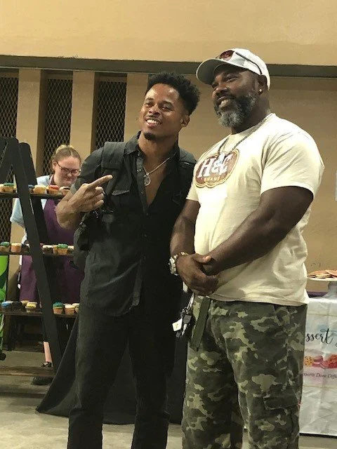 Denny (Coffee Route Salesman) posing with Walter Emanuel Jones, who played the role of his childhood favorite Mighty Morphin Power Ranger, Zach.