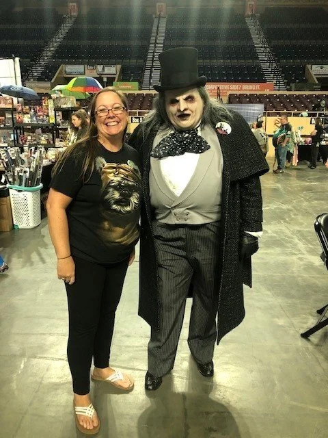 Elizabeth (Office Staff Member) happy to meet Penguin from her favorite Batman movie, Batman Returns.